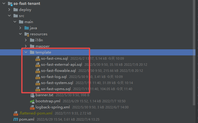 更新业务服务的初始化SQL脚本,位置在resources/template中,文件名以服务名称来命名。